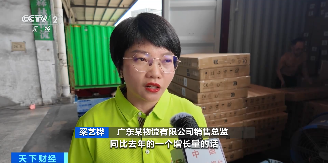 广东某物流有限公司销售总监 梁艺铧:(外贸订单)都集中在这两个月,客户的发货量同比去年的增长量,超过了40%左右。